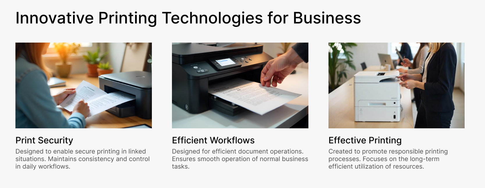 A complete range of printers and copiers built for reliable use across home and office environments.